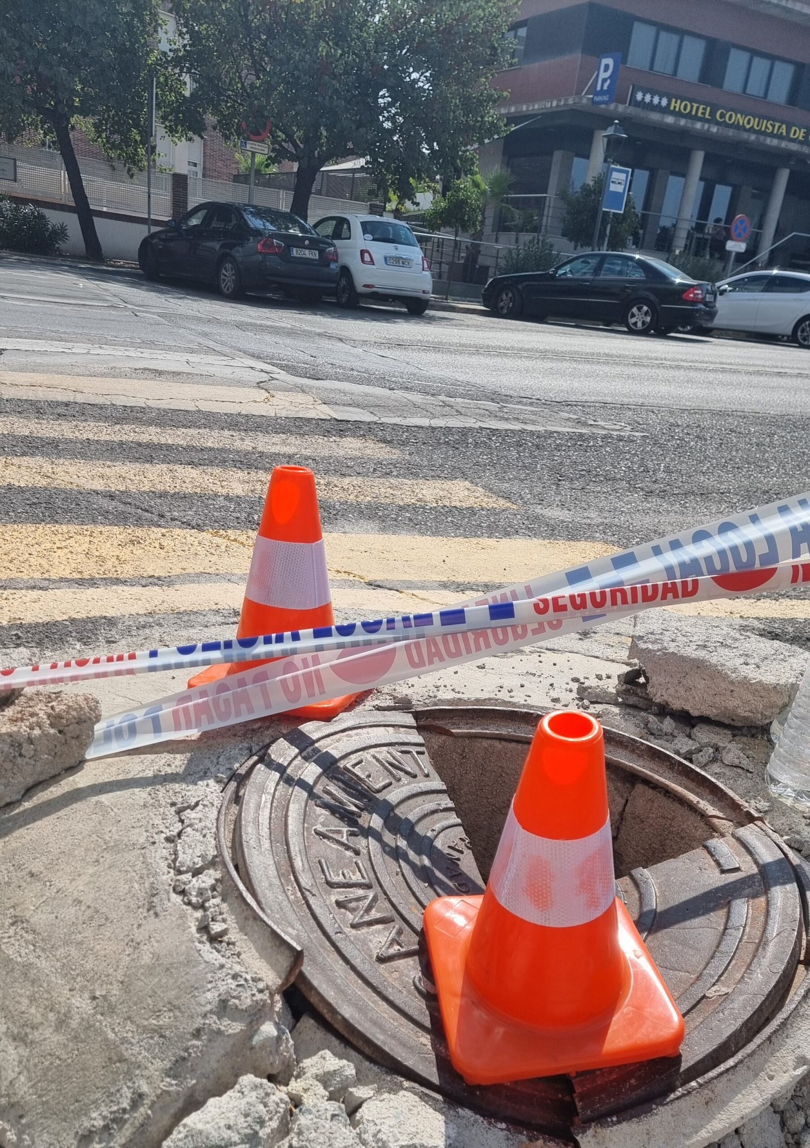Según los primeros indicios, la tapa habría cedido tras el paso de un vehículo pesado. La tapa metálica estaba partida en tres trozos y uno de ellos se había desprendido hacia el interior, dejando un agujero con espacio suficiente para que cualquier peatón pudiera meter la pierna, con el consiguiente riesgo de caída.